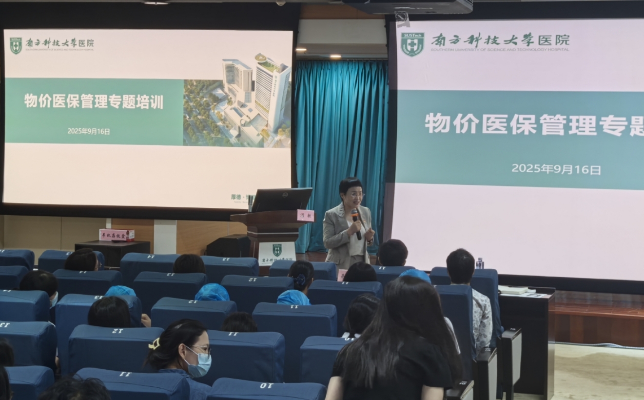 培训中,温敏主任结合自身丰富的实践经验和政策积累,深入剖析了物价工作的“被动执行”与“主动执行”三大类别,详细解读了《深圳市医疗服务价格项目目录》中的关键术语与规范;围绕接诊全流程五个环节共16个关键风险点,通过典型案例重点解析临床工作中常见的误区,并提出具体、可行的合规建议;在医保方面,她系统梳理了政策依据与协议范围,并结合《医疗保障基金使用监督管理条例》及人证核验、自费项目知情同意、外伤责任明确等实际环节,指出常见风险点与防范措施;此外,她还分享了进销存管理的实战经验与常见问题整改路径。最后,温主任以“敬畏医保、恪守规矩、团队协作、取得真经”十六字寄语,期望我院物价医保管理水平持续提升。