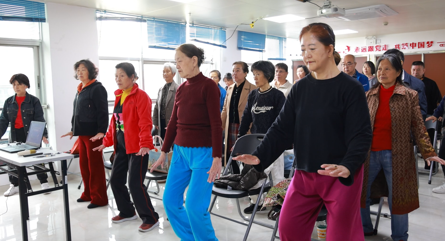 活动伊始,中医科肖红花护士带领居民们一起练习传统养生功法“八段锦”。通过现场讲解与动作指导,帮助大家在冬季利用中医养生智慧强身健体,为接下来的健康讲座营造了轻松愉悦的氛围。