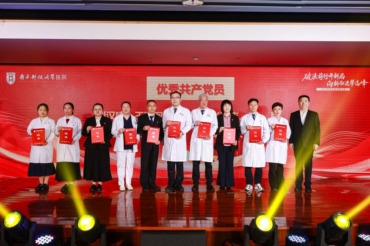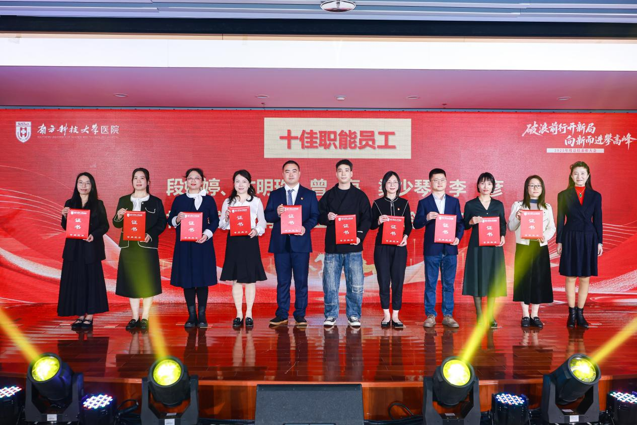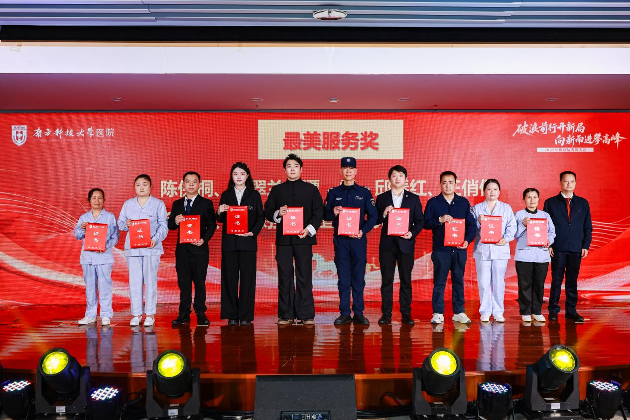 各奖项获奖名单宣读后,受表彰的集体代表和个人依次登台接受荣誉表彰,台下掌声雷动,向优秀的南科医人致敬。