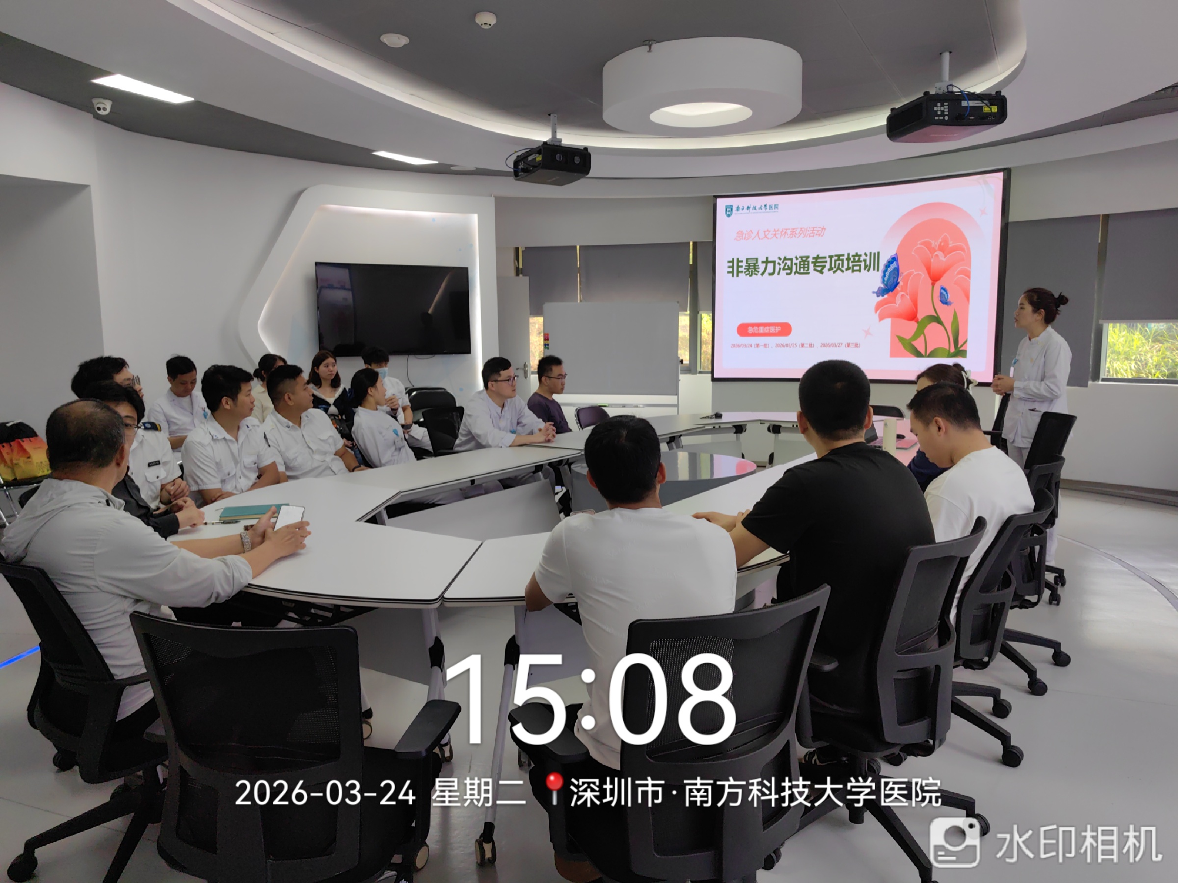 【通讯员:邱芬】为进一步提升急诊科医护人员的沟通技巧与人文关怀能力,构建和谐医患关系,近日,我院急诊科在创新中心会议室分三批组织全体医护人员开展了“非暴力沟通”专项培训。本次培训由急诊科护士长邱芬主讲,急诊科武文超主任进行现场点评,全体急诊医护积极参与,反响热烈。