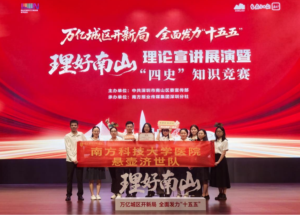 【通讯员:李桂华】2026年3月25日,由中共深圳市南山区委宣传部主办、南方报业传媒集团深圳分社承办的“万亿城区开新局全面发力‘十五五’”“四史”知识竞赛圆满落幕。我院医技第五党支部参赛队伍“悬壶济世队”最终凭借扎实的知识储备与默契的团队协作斩获三等奖。此次获奖,是对我院参赛队伍备赛成效与赛场表现的充分肯定,更是医院坚持党建引领、推动党建与业务深度融合的生动体现。
