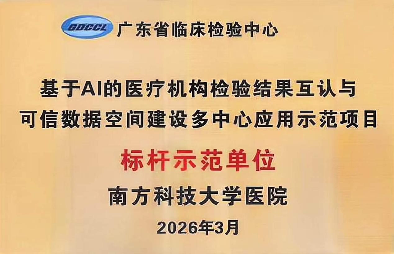 【通讯员:周宁】近日,由广东省医院协会、省临床检验中心联合发起的“基于AI的检验结果互认平台及可信数据空间建设”项目公布首批标杆单位名单。我院检验科凭借扎实的质量管理与智能化建设成果,成功入选全省23家“标杆示范单位”,成为深圳市少数获此认定的医疗机构之一。