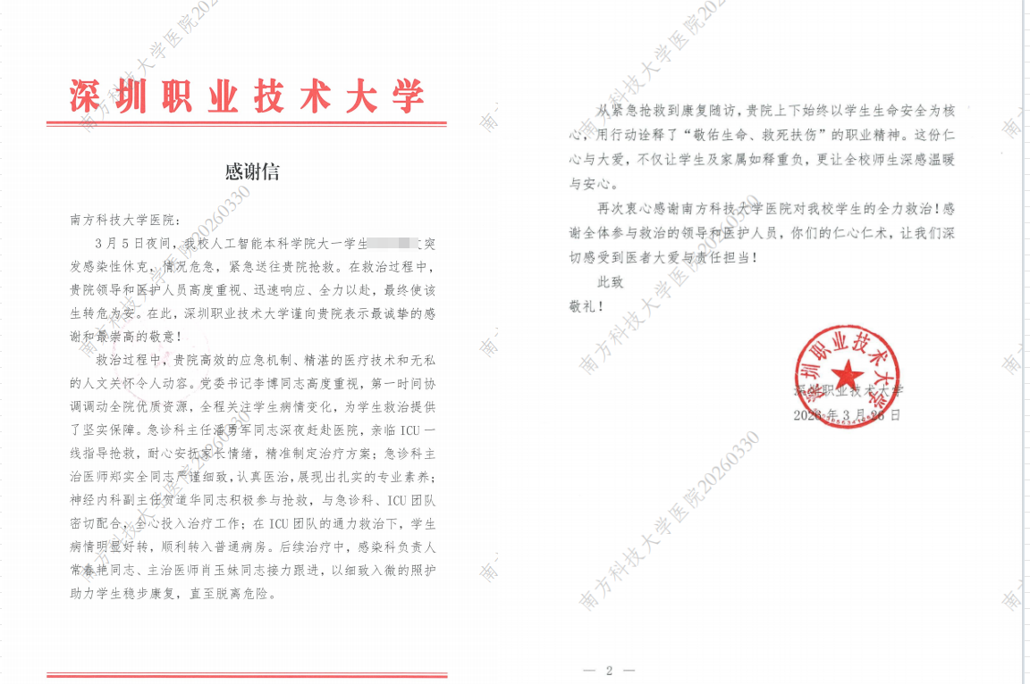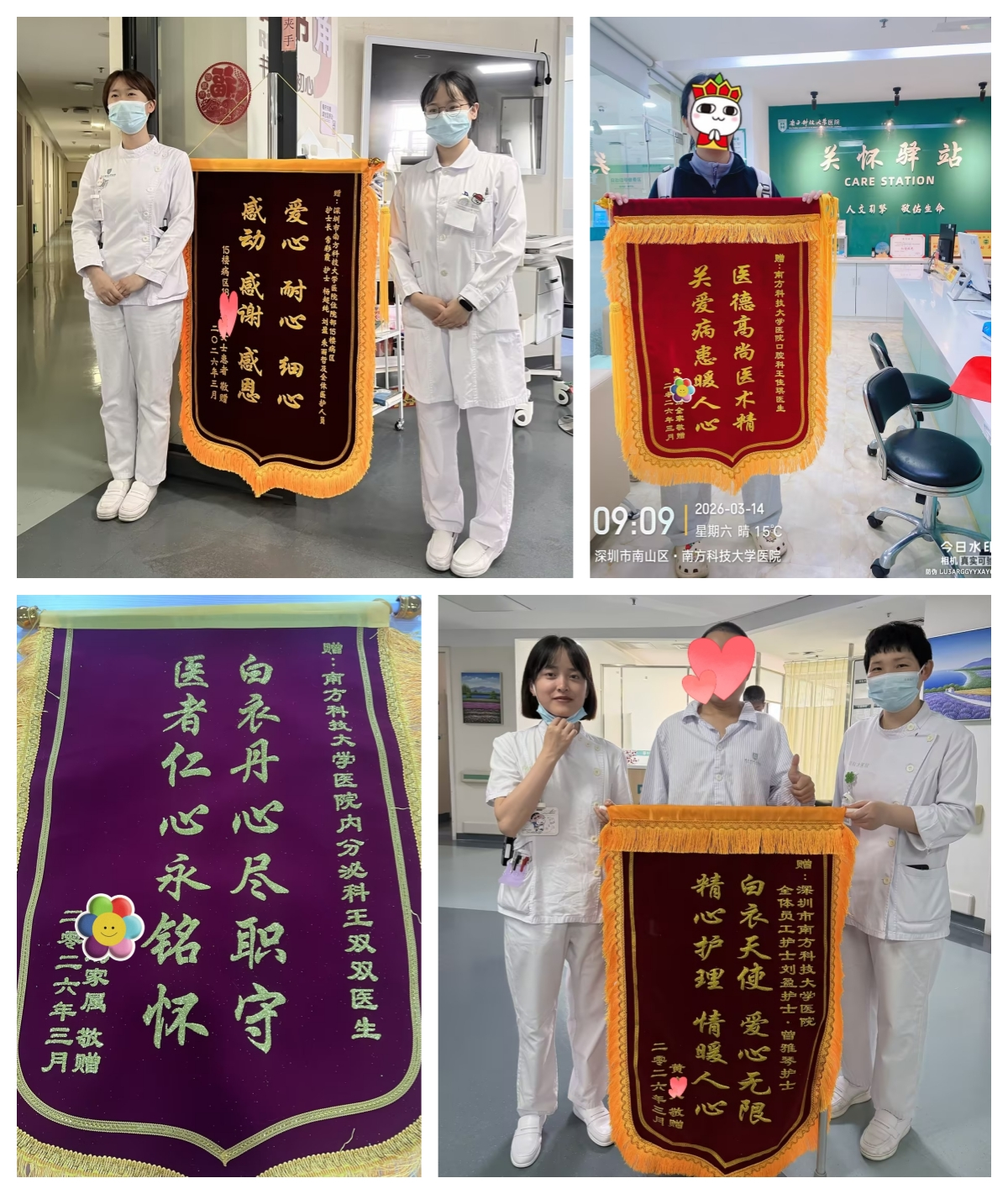 三月春风暖,锦旗映初心。南方科技大学医院多位医护人员凭借精湛医术与暖心服务,收获患者及家属送来的锦旗与感谢信,用专业与担当书写医者荣光。