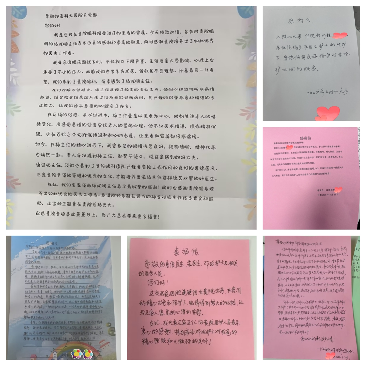 本月,重症医学科、急诊科、肿瘤科、呼吸内科、内分泌科、肝胆胰外科、眼科、妇科等多个科室接连收到赞誉。重症救治争分夺秒,急诊急救高效有力,专科诊疗精准细致,日常护理贴心周到。医护人员以敬佑生命为使命,用耐心与责任守护患者健康,赢得广泛认可。