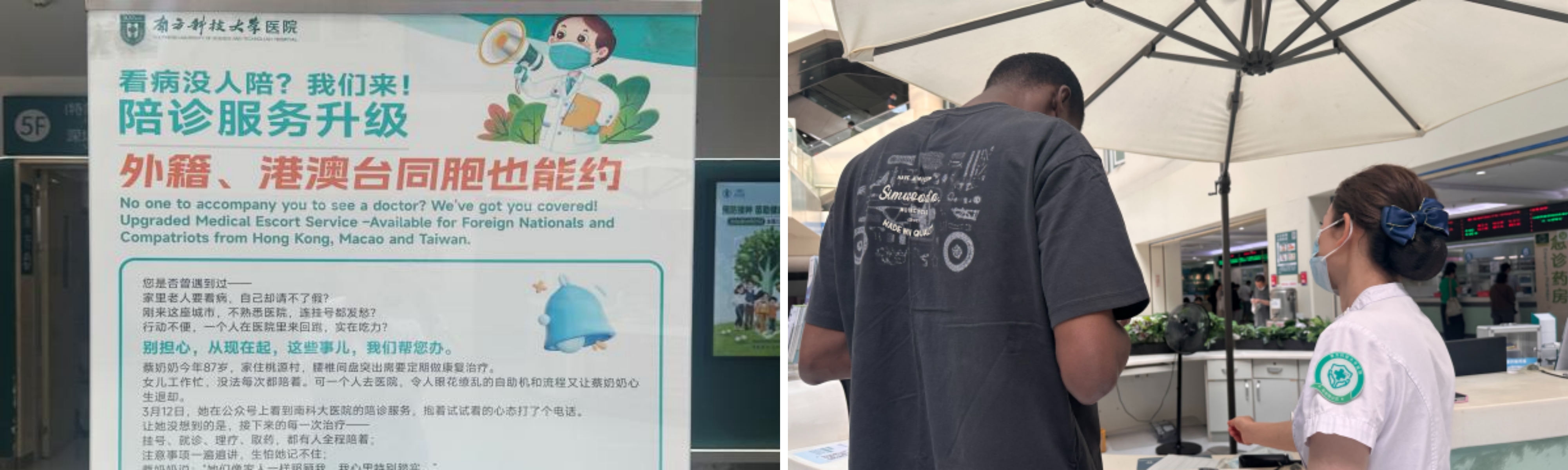 为方便老年患者及家属快速获取陪诊服务信息,在门诊一楼咨询台设置专项接待服务点,并在门诊大厅显著位置新增“助老陪诊”宣传展架,同时在官方微信公众号发布助老陪诊专题推文,详细介绍服务对象、预约申请方式、陪诊流程及成功案例。