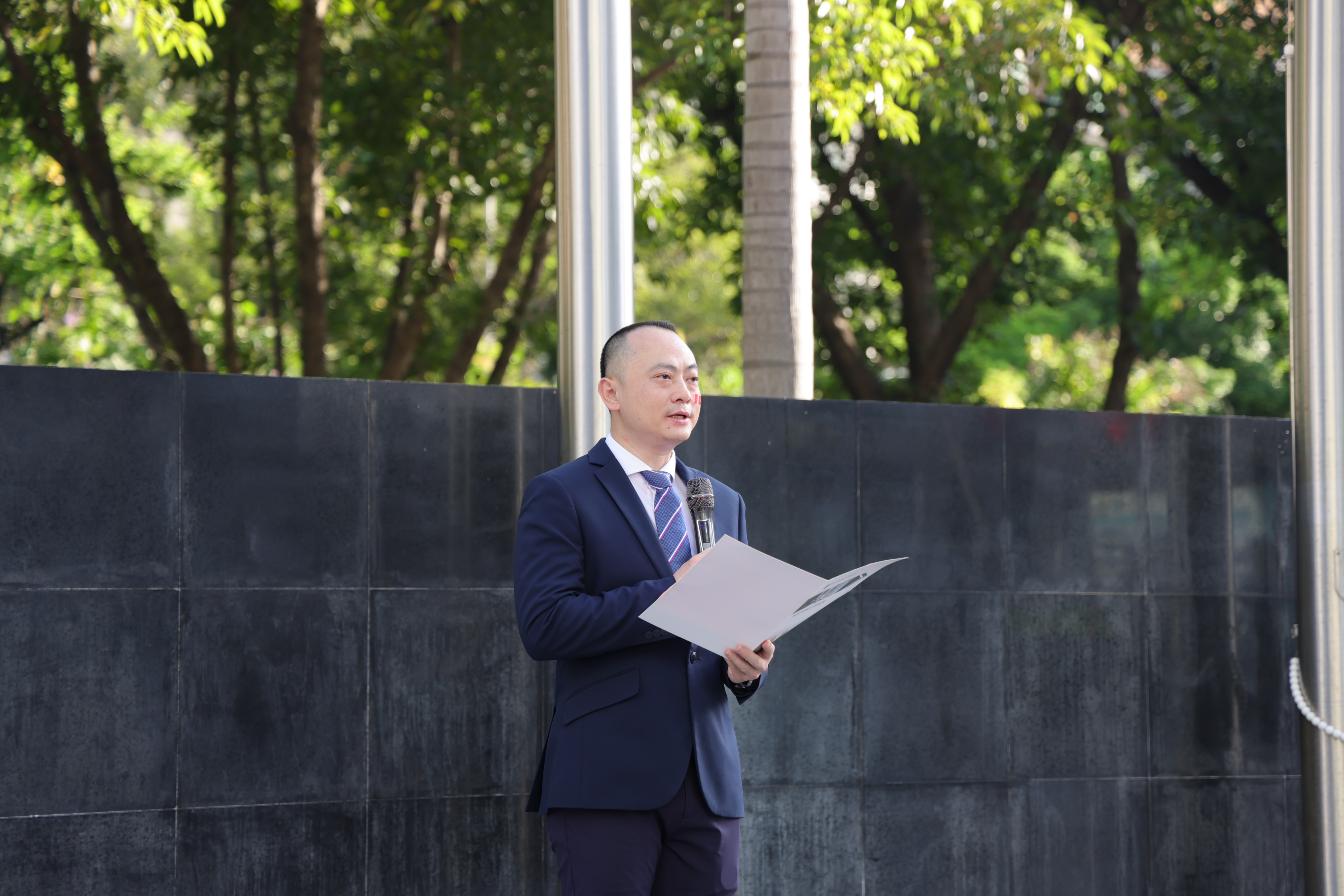 南山区卫健局党组成员、我院党委书记李博,院长顾建钦,执行院长徐明明等全体院领导,各职能科室中层、临床科室主任、护士长及各岗位职工代表共130余人齐聚医院广场,大家着装整齐、精神饱满,共同庆祝祖国华诞。升旗仪式由院长顾建钦主持。