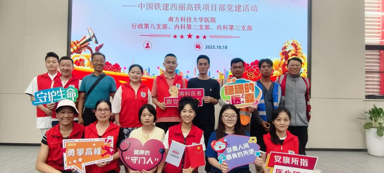 【通讯员:孙莹】为深入贯彻落实党建引领基层服务的宗旨,2025年10月18日上午,由我院行政八支部联合内科二支部、内科三支部共同走进中国铁建西丽高铁项目部,成功举办“党建引领筑堡垒,健康护航促生产”主题共建活动。此次活动将党建融合健康服务,把专业医疗知识送到工程建设一线,受到项目部广大职工的热烈欢迎。