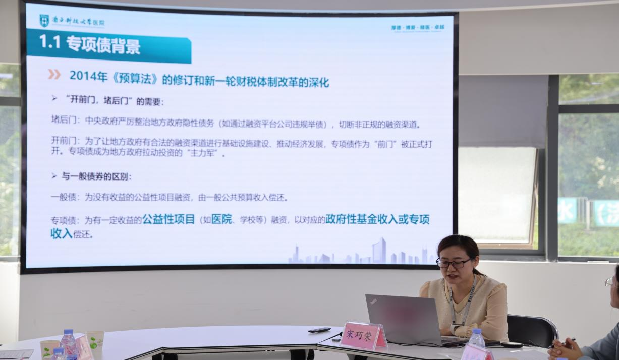 在汇报环节,宋巧荣总会计师围绕《政府专项债券管理新规及其对医院运营的影响》展开深入解读,结合国家最新财会规定,为医院如何“借好、用好、管好”专项债券提供了思路与方向,同时系统分析了新政策对医院项目谋划、资金使用及风险防控带来的影响。