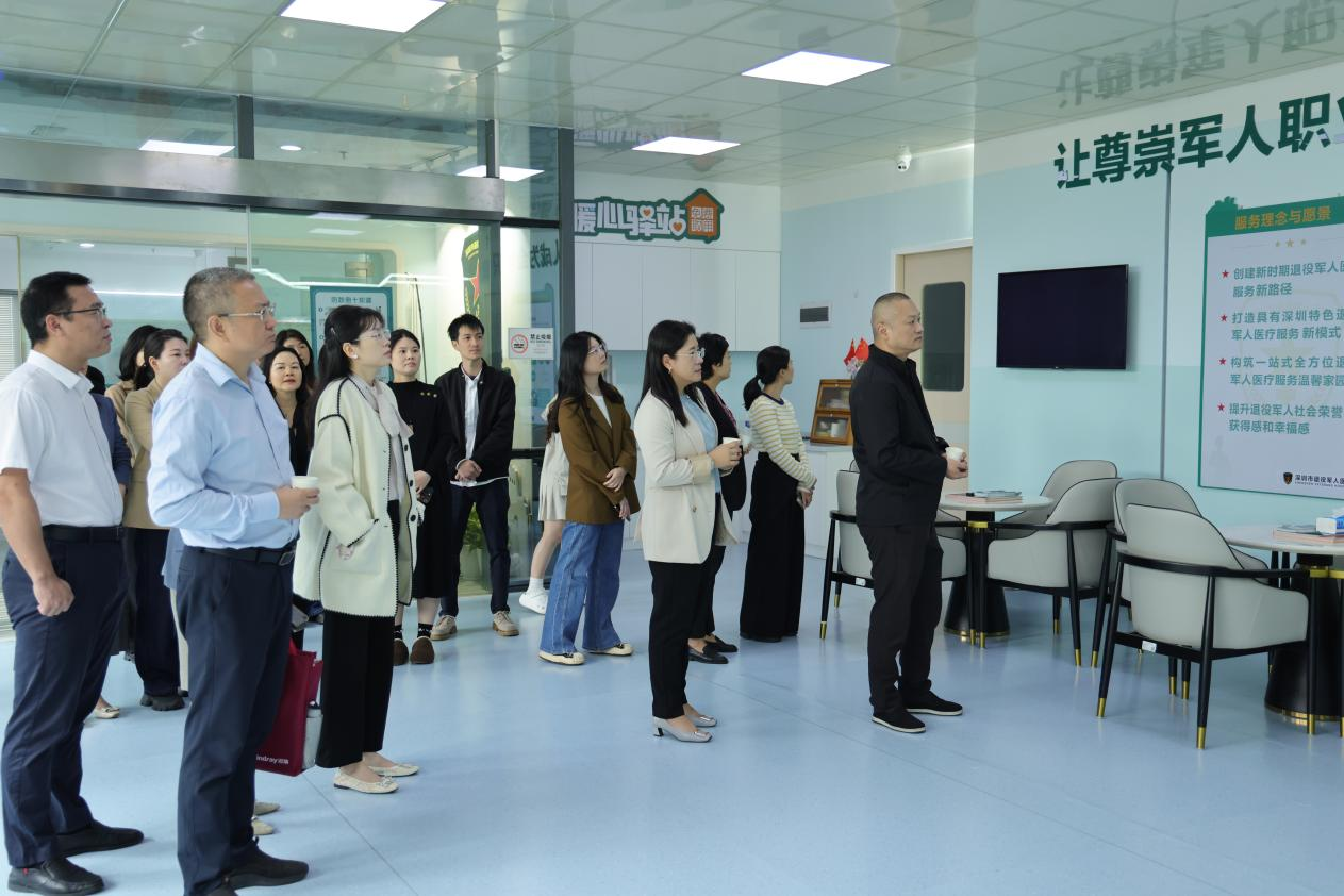 会议伊始,与会嘉宾首先参观了我院退役军人特诊中心及石鼓山连廊,实地了解我院在特色医疗服务与空间建设方面的成果,对医院进行了宣传与推广,让更多的人了解到南科大医院、深圳市退役军人医院。