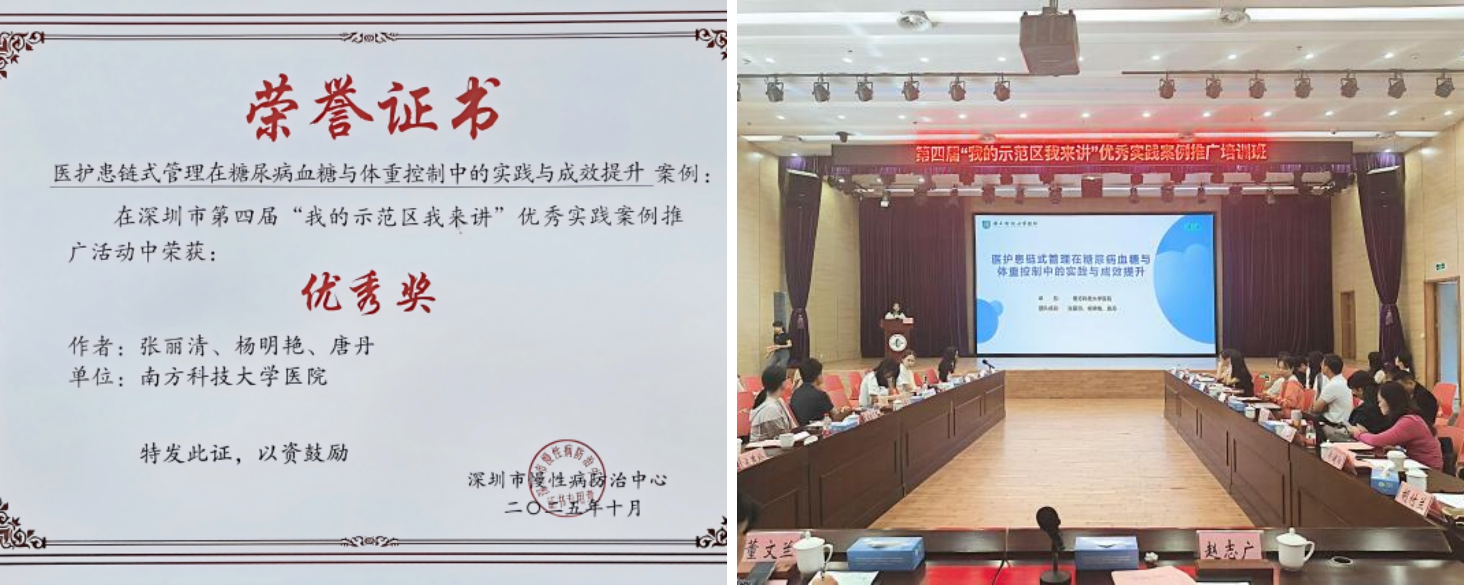 【通讯员:刘秀云】近日,深圳市第四届“我的示范区我来讲”优秀实践案例评选结果揭晓。由我院护理部主导、内分泌代谢科报送的案例《医护患链式管理在糖尿病血糖与体重控制中的实践与成效提升》,经全市范围初赛、复赛与决赛层层遴选,从众多案例中脱颖而出,最终荣获“优秀奖”。这是我院在健康促进与健康教育领域的又一重要成果,也是对我院全方位健康促进工作的充分肯定。