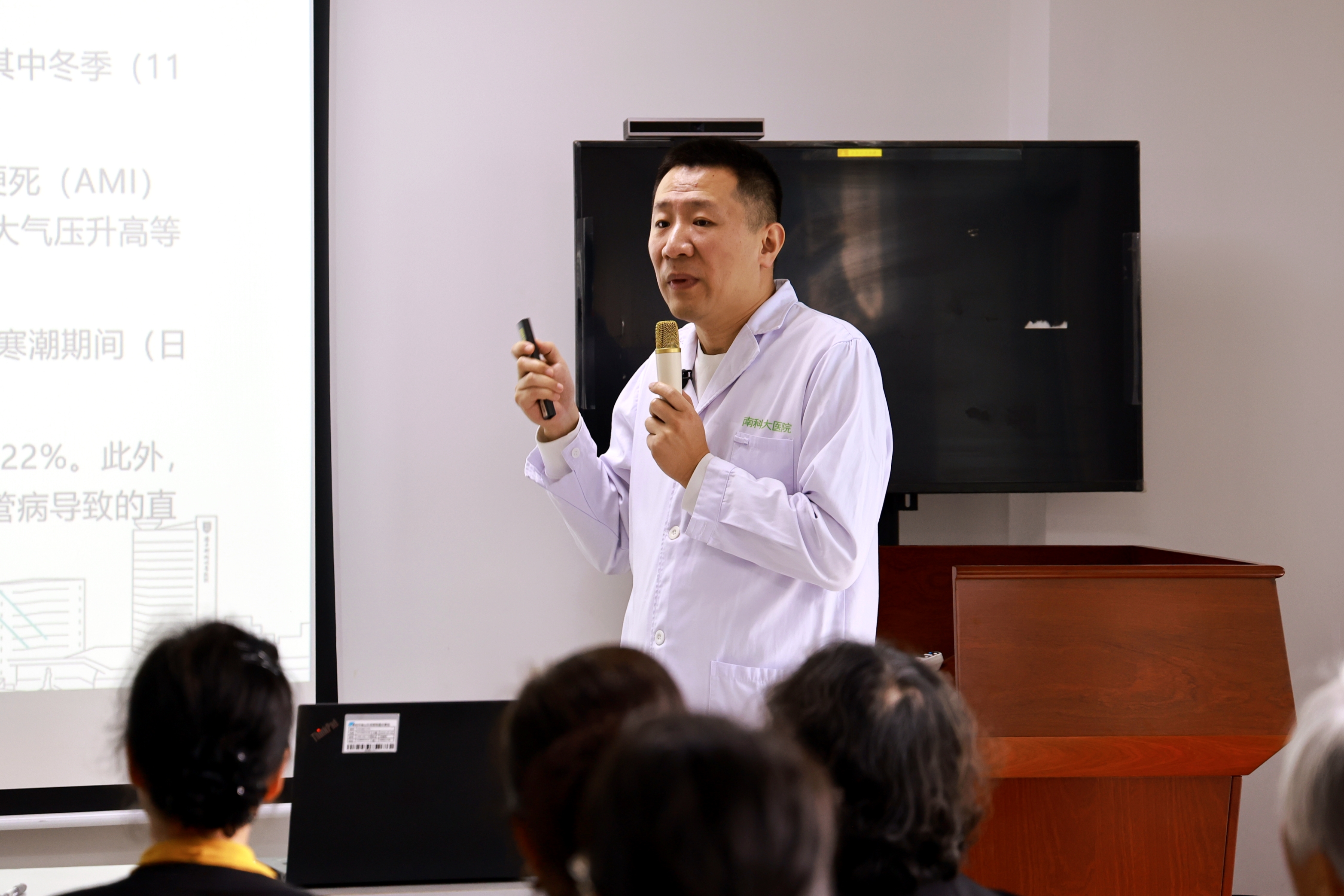 随后,曹旭东医生围绕“如何在寒冬守护心血管健康”展开专题讲座。结合真实案例与权威数据,详细讲解了冬季心血管疾病高发的原因、高危人群识别方法、常见症状与急救措施,以及冬季饮食、运动、保暖等生活防护策略。讲座内容深入浅出,贴合居民实际生活,现场听众纷纷表示受益匪浅。