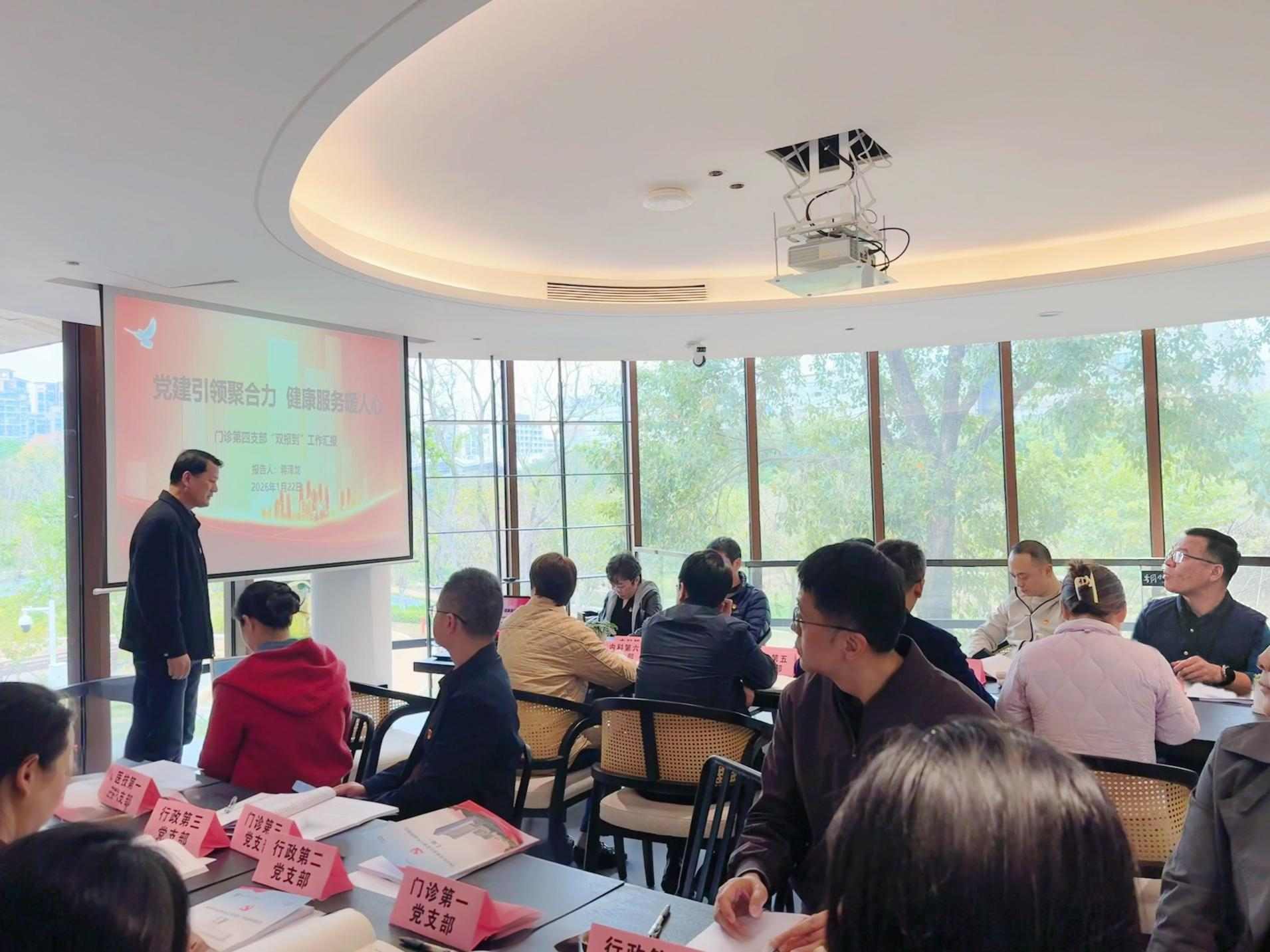 党委书记李博作总结讲话,肯定各支部党建工作成效,并就下一步工作提出三点要求。一是强化政治引领,夯实思想根基。支部书记要把握党建核心,聚焦“抓人、抓思想、抓队伍”,以过硬品德、清晰思路、务实作风凝聚共识,推动党员干部思想、政治、行动同向同步。二是深化党业融合,凸显组织效能。紧扣救死扶伤主业,推动党建与业务深度融合,打造“一科一策、一科一评”特色品牌,通过退伍军人故事宣讲、健康讲堂、校园夏令营等活动,提升科室影响力与服务质效。三是压实党建责任,擘画发展蓝图。支部书记要主动担当,牵头制定 2026-2027 年支部发展规划,制作党建引领业务微视频,展现流程优化和服务升级实效。