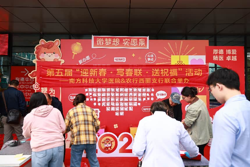 【通讯员:赖春莲】为弘扬中华优秀传统文化,营造喜庆祥和的节日氛围,值此新春佳节来临之际,我院于2月6日上午圆满举办了第五届"迎新春·写对联·送祝福"主题活动。本次活动以春联为载体,以笔墨传情,旨在通过书法这一传统艺术形式,向全院职工、患者及其家属传递新春的问候与美好的祝愿,进一步丰富职工文化生活,凝聚团队精神,深化医院人文关怀内涵。本次活动特邀书法家三位及我院书法爱好者现场挥毫,送去马年新春的祝福。本次活动共现场书写新春对联200份,同时为职工、患者及家属发放新春礼包1000份。