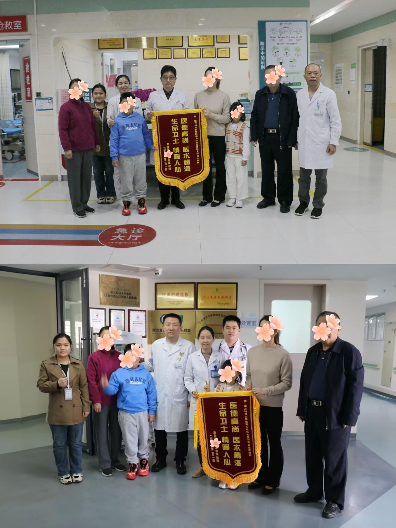 为表达全家人的感激,患者家属专程到院,将印有“医德高尚 医术精湛,生命卫士 情暖人心”字样的两面锦旗分别送到急诊科与心血管内科团队手中,感谢医护人员给予患者第二次生命。来自患者家属的真切言语,让所有参与抢救的医务人员倍感温暖与鼓舞。医护人员在接收锦旗的同时,也送上了细致的康复指导。