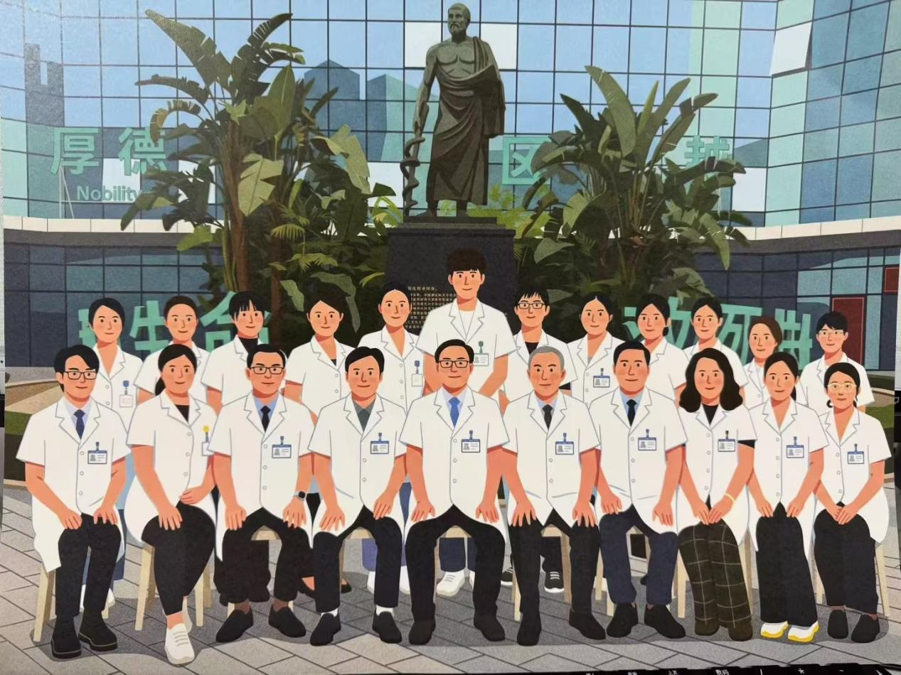 为了表达内心的感谢,患者利用周末休息时间,花费整整两天亲手绘制了一幅“全家福”画作。这幅画并非AI生成,而是患者一笔一画用心完成,画中每一位医护人员的特征都被精准捕捉——从发型、眼镜到神态、笑容,惟妙惟肖,大家一眼就能在画中找到“自己”。