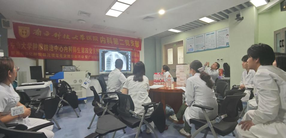 【通讯员:张海燕】为推进肿瘤规范化诊疗,落实全国肿瘤防治宣传周公益科普工作,4 月17日,我院内科二支部与中山大学肿瘤中心第四支部联合举办抗癌宣传周公益活动。本次活动特邀中山大学肿瘤防治中心罗孔嘉主任莅临指导,我院内科二支部王利平主任、钟凤玲护士长、全体医护人员及实习生全程参与学习。