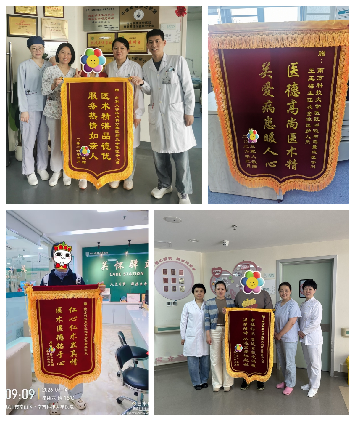 三月春风暖,锦旗映初心。南方科技大学医院多位医护人员凭借精湛医术与暖心服务,收获患者及家属送来的锦旗与感谢信,用专业与担当书写医者荣光。